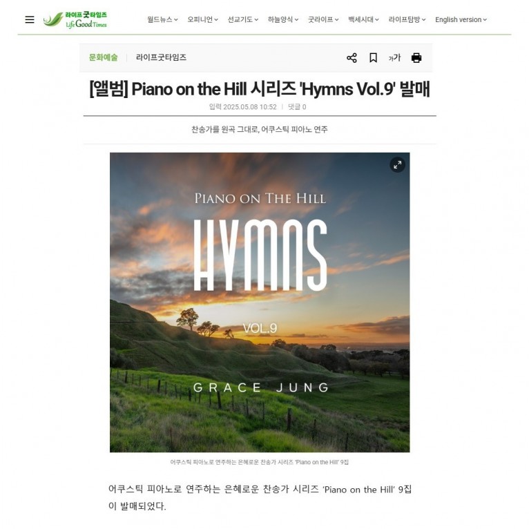 [기사] Piano on the Hill 시리즈 'Hymns Vol.9' 발매(라이프굿타임즈)